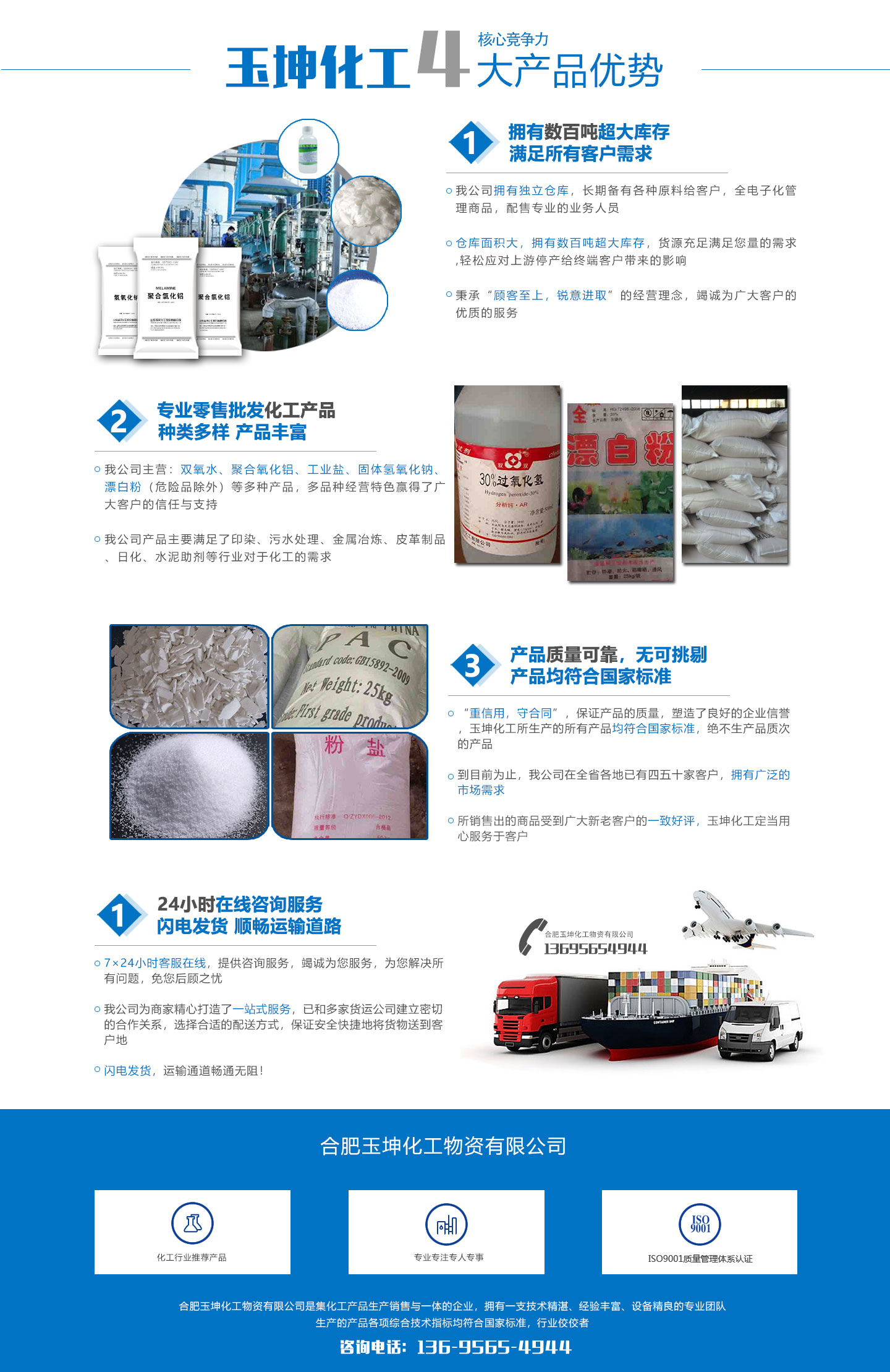 合肥玉坤化工物資有限公司自創(chuàng)辦以來(lái),玉坤化工一直專(zhuān)注于化工行業(yè),在該領(lǐng)域具備了明顯的技術(shù)、生產(chǎn)和服務(wù)優(yōu)勢(shì)。我們堅(jiān)持以技術(shù)為先導(dǎo),持續(xù)進(jìn)行產(chǎn)品開(kāi)發(fā),不斷提高技術(shù)、生產(chǎn)水平;成立了研發(fā)中心,持續(xù)引進(jìn)高素質(zhì)技術(shù)人才,擁有一支認(rèn)真負(fù)責(zé)的研發(fā)團(tuán)隊(duì)。公司一貫遵循“以市場(chǎng)為導(dǎo)向、以質(zhì)量求生存、以信譽(yù)拓市場(chǎng)”的發(fā)展思路,始終致力于為客戶(hù)提供產(chǎn)品和滿(mǎn)意的服務(wù)。我們將憑借技術(shù)人才、精良的設(shè)備、可靠的技術(shù)、科學(xué)的管理、服務(wù),以“質(zhì)量為先、信譽(yù)為重、管理為本、服務(wù)為誠(chéng)”的理念,求真務(wù)實(shí)、銳意創(chuàng)新的開(kāi)拓精神,積極圍繞公司的發(fā)展戰(zhàn)略目標(biāo),努力把公司建設(shè)成技術(shù)密集型、外向行、市場(chǎng)型的國(guó)內(nèi)先進(jìn)的精細(xì)化...
